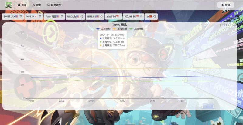 分享下vmrack家的三网精品24小时延迟丢包情况图